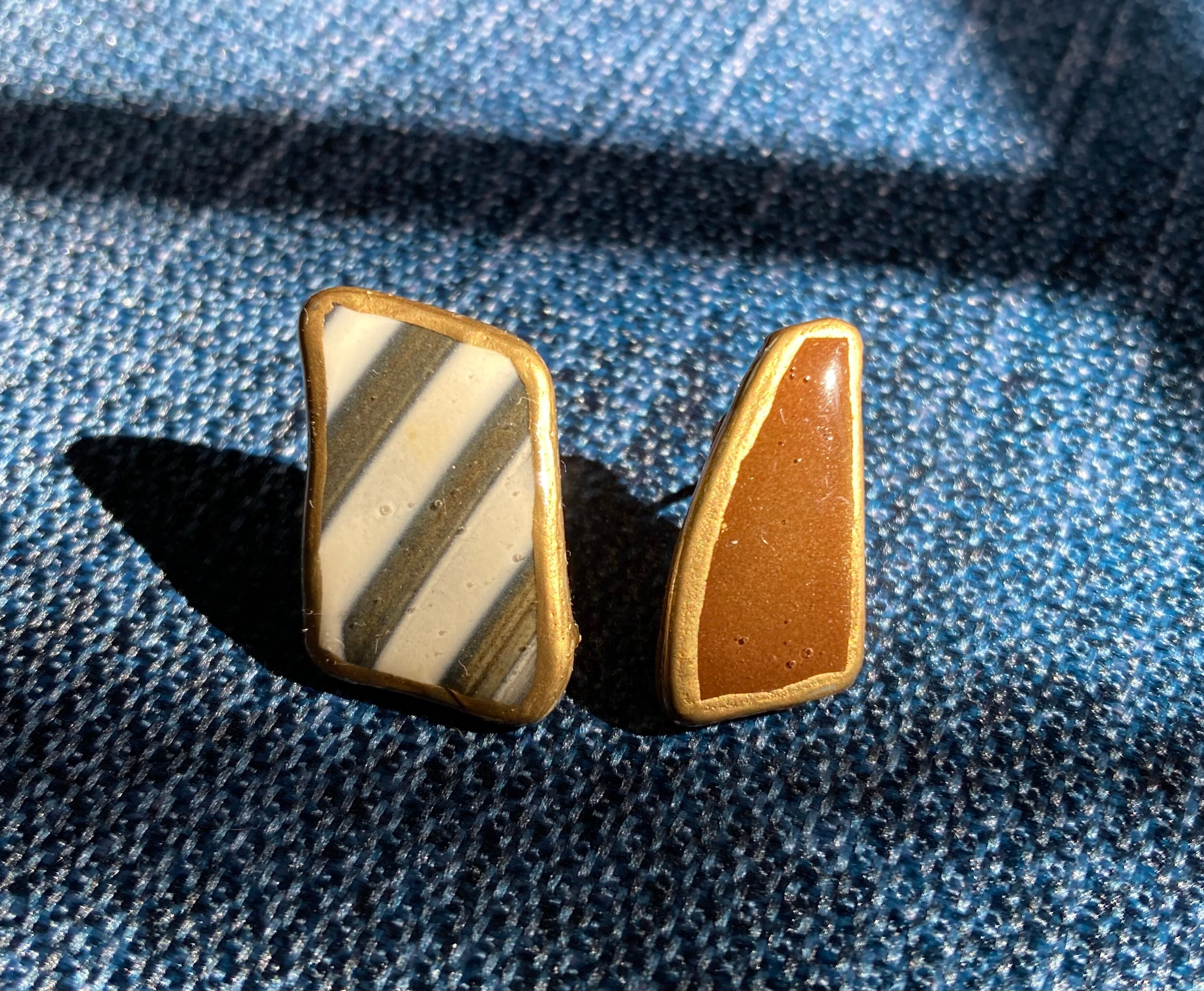 ビーチコーミングで出会った陶器のかけらをつかったピアスです。
