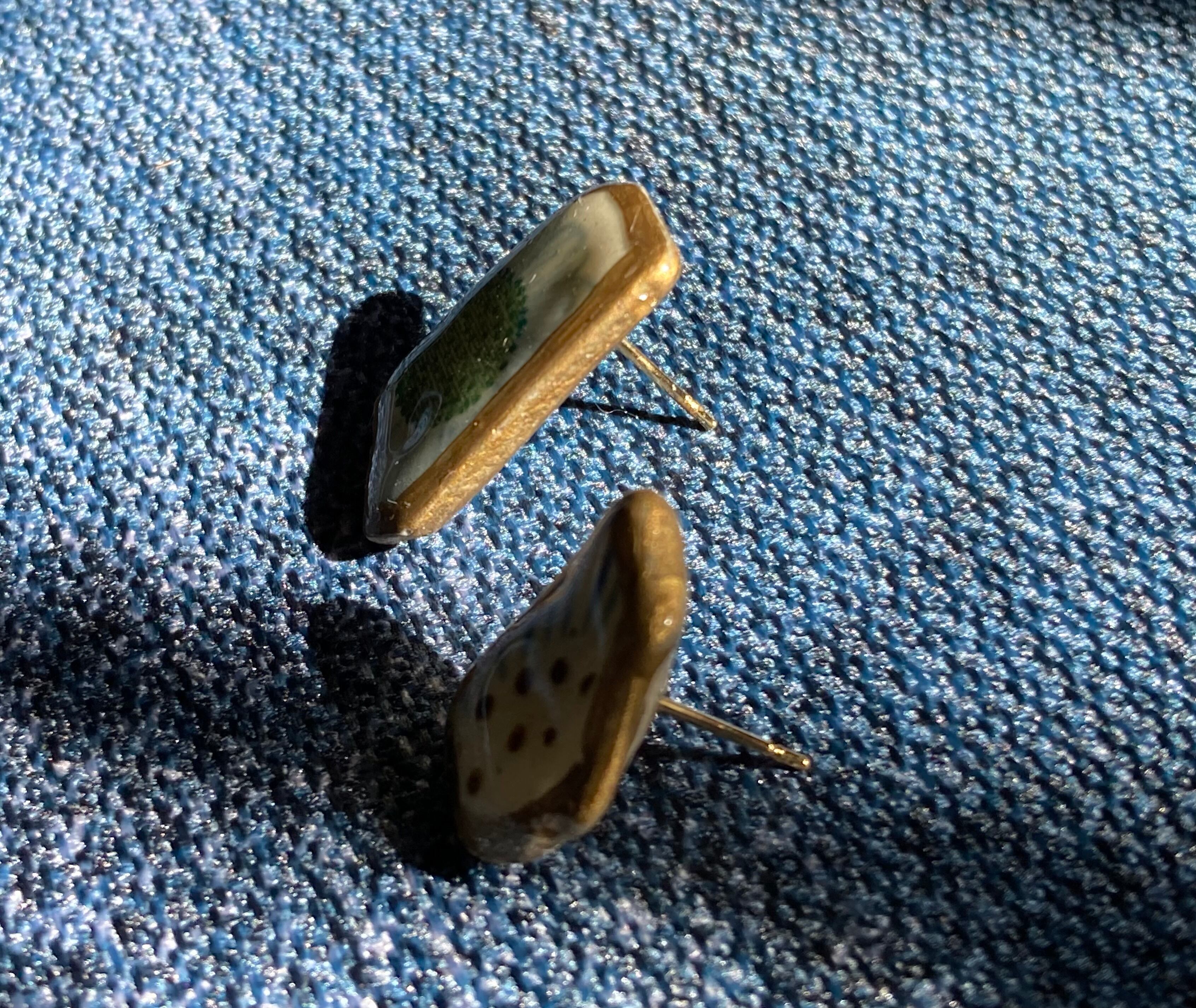 ビーチコーミングで出会った陶器のかけらをつかったピアスです。